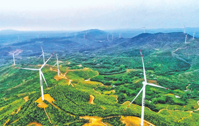 行驶在高速公路上,只见远处的白色风力发电机叶片一直在旋转。“我们这里有3座风电场和1座风光一体发电站,能满足示范区内所有居民的用电。”孙朝霞说。